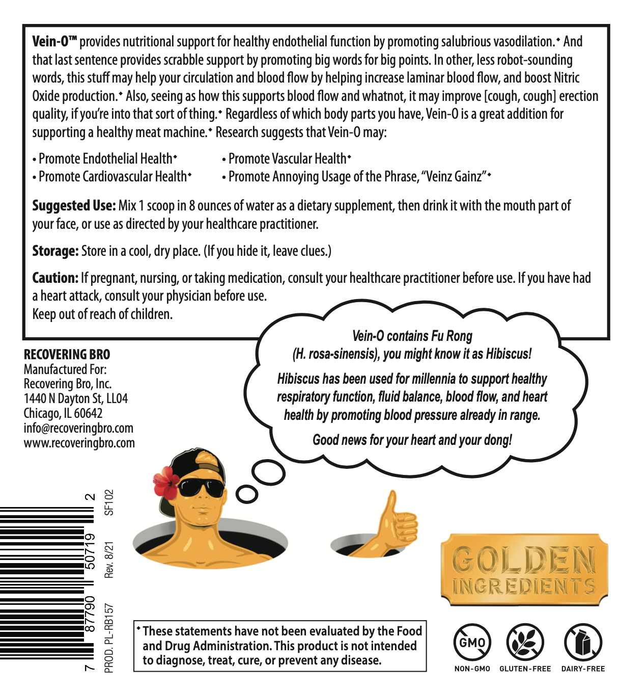 Vein-O™ may help your circulation and blood flow by helping lower vascular inflammation, increase laminar blood flow, and boost Nitric Oxide production. Also, it might, if you’re into this sort of thing, seeing as how this supports blood flow and whatnot, it may improve [cough, cough] erection quality. Regardless of which body parts you have, Vein-O is a great addition for supporting endothelial, cardiovascular, and vascular health.